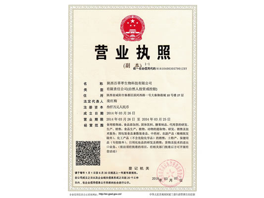 陜西百草萃生物科技有限公司,位于陜西省咸陽市秦都區(qū)濱河西路1號大秦御港城,公司成立于1996年,主要從事天然植物種植、研發(fā)、生產(chǎn)、加工、銷售為一體的高科技企業(yè)。主營醫(yī)藥原料、保健品原料、化妝品原料,精細化工原料。公司致力于人類健康保護事業(yè)“ 以科技為動力,以質(zhì)量求生存” 的本質(zhì),依托陜西高新科技技術人才和科研優(yōu)勢,已形成多學科、全方位、高層次的技術管理精英團隊。充分利用秦巴山區(qū)的天然藥物資源,歷經(jīng)多年發(fā)展為打造百草萃生物品牌奠定了基礎。